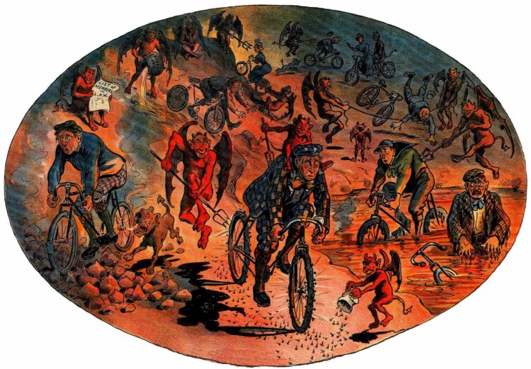 Women, of course, were not having any of it. They kept on buying their bloomers and cycling specific clothing and kept on riding. It became quite a “thing” this damnation of the Bike by politicians and physicians and pastors in the pulpit! The argument that cycling was a vice which would lead to smoking and drinking and all sorts of other vices was not unpopular among certain folks in society. Pastors would preach that cycling would take you straight down the road to Hell!