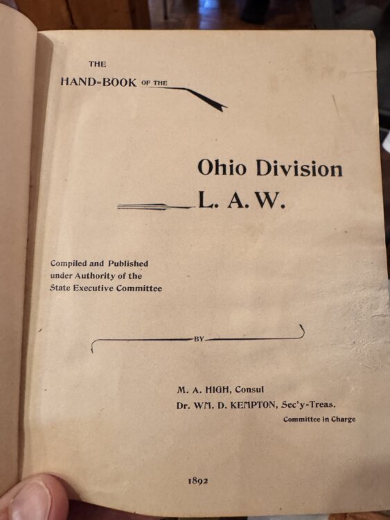 Nobody could quite guess what was inside… Even with a hint [something from the 90s] nobody figured it out…so I pulled out a 1st edition of the LAW’s Ohio Division Handbook… published in Cincinnati in EIGHTEEN 92. I guess I could have added THAT tidbit to the hint…